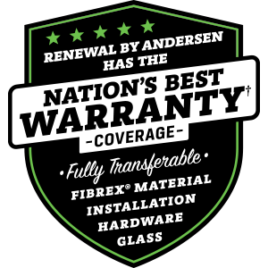 Renewal by Andersen has the Nation’s Best Warranty coverage. It is fully transferable and covers Fibrex material, installation, hardware, and glass. It is the only warranty among top selling window companies that meets all of the following requirements: easy to understand terms, unrestricted transferability, installation coverage, labor coverage, geographically unrestricted, coverage for exterior color, insect screens and hardware, and no maintenance requirement.