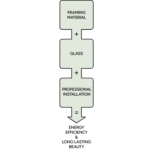 Framing Material + Glass + Professional Installation = Energy Efficiency and Long-Lasting Beauty